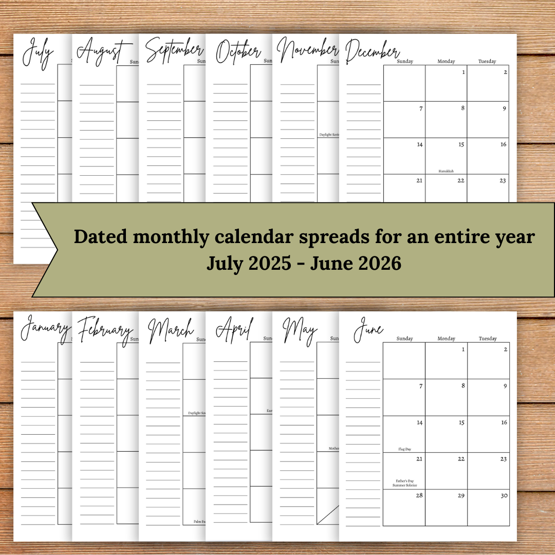 -A layout of the entire year from July 2025-June 2026