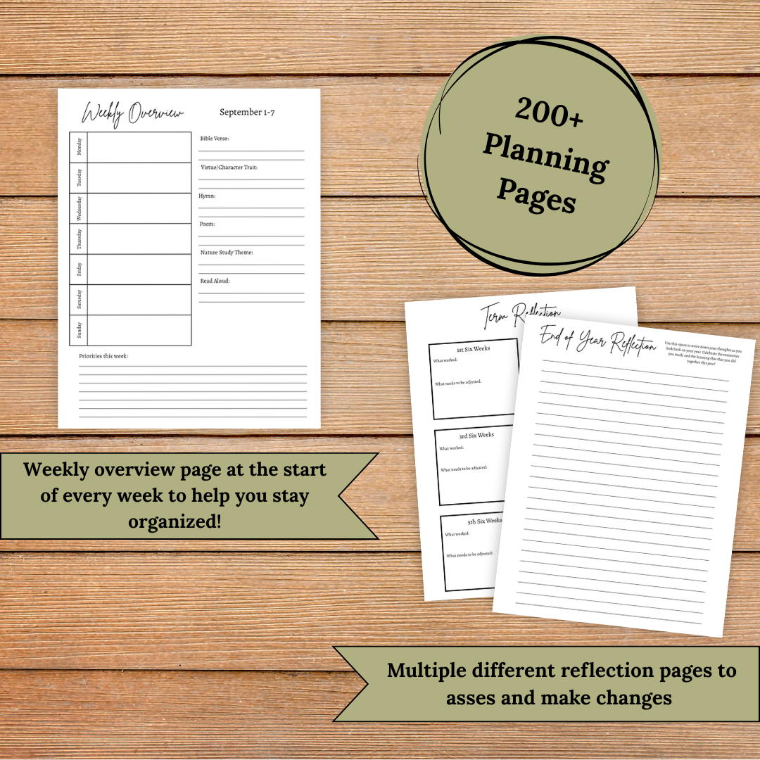 Designed with a beautiful cover and tidy pages, this planner will help keep you organized as you plan your homeschooling year. With 200+ planning pages there is plenty of room to write out lessons, keep track of progress, and much more.